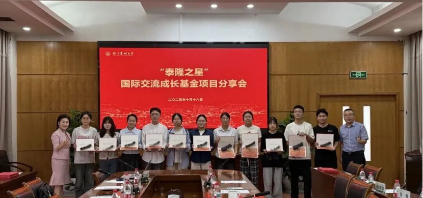 10月16日,浙江农林大学“泰隆之星”国际交流成长基金项目分享会举行。浙江泰隆慈善基金会项目总监蔡函孜,项目经理郭佳浩,学校国际处副处长陈立杰出席活动,“泰隆之星”国际交流成长基金获得者全程参与。分享会由学校校友办、基金会副主任魏玲玲主持。