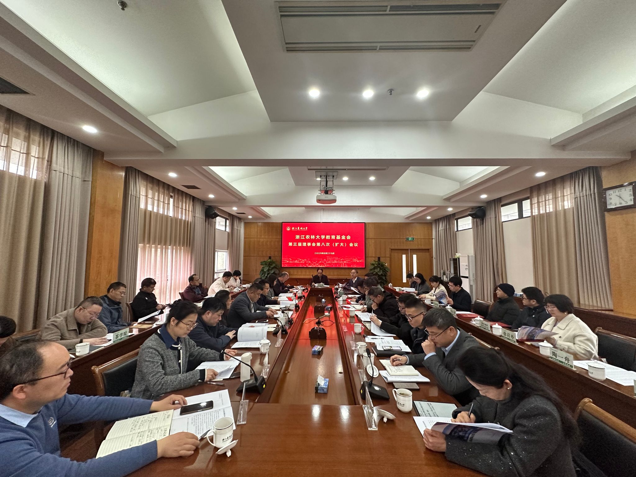 3月27日,浙江农林大学教育基金会召开第三届理事会第八次(扩大)会议。校教育基金会理事长周国模出席会议并讲话。会议由校教育基金会副理事长胡祖吉主持。校教育基金会全体理事、监事,各学院(部)分管基金会工作负责人,2025年度校友与基金会工作先进集体代表、先进个人参会。